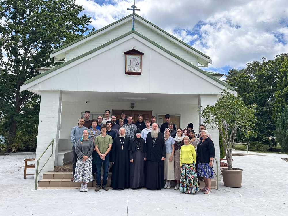 After Liturgy on Sunday, Matushka Maria led the pilgrims on a walking excursion of the extensive convent grounds and surrounds. A visit was made to “Monk Guri’s cave” at the very edge of the surrounding Eucalypt bushland, where Matushka recounted some details of Fr Guri (Demidov’s) monastic and hermitic struggles and his founding of the original St John the Baptist Skete in 1960 when he arrived in Australia from China as a Russian refugee. The pilgrimage group was very taken by this history and sang “Memory eternal” for Fr Guri’s repose. A short distance from the cave the pilgrims visited the newly established St John the Baptist Skete, also nestled in an area adjacent to the bushland, located on the historic sites of the previous Diocesan printing press and candle-making factory. The skete’s rector, Fr Joachim (Ross), greeted the youth and showed them the current church where services are regularly celebrated and the very fine new and future church, which is still in mid-construction stage. Fr Joachim spoke of the challenges, difficulties and joys of his monastic and missionary struggles. Once again, the youth were deeply touched by Fr Joachim’s description of his own journey to Orthodoxy and his monastic calling and labours.