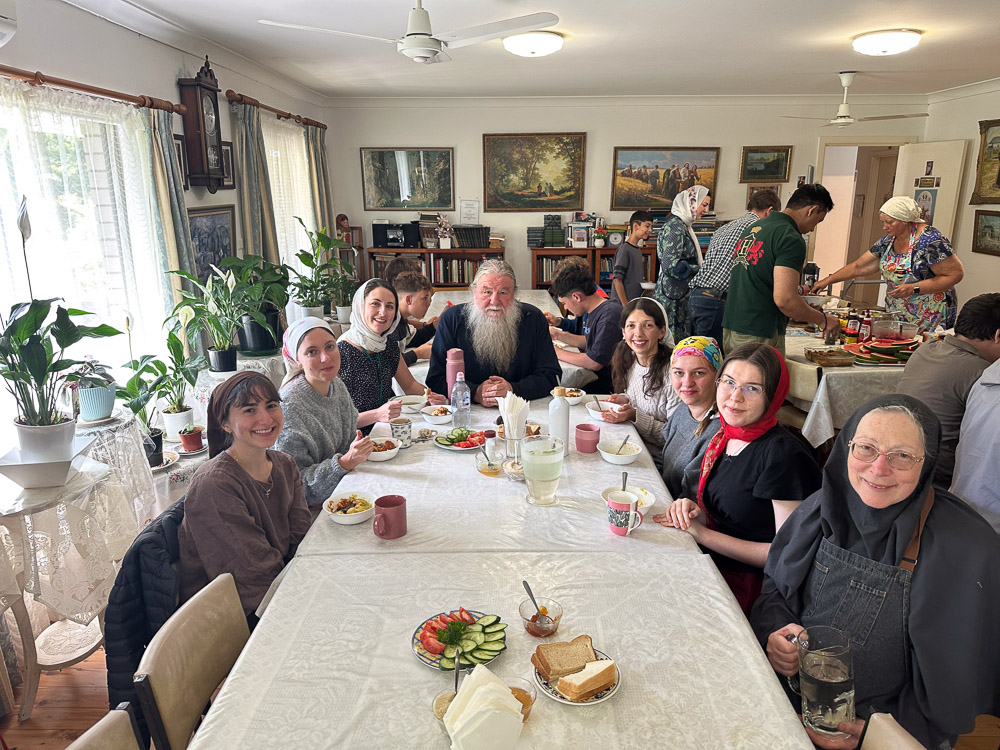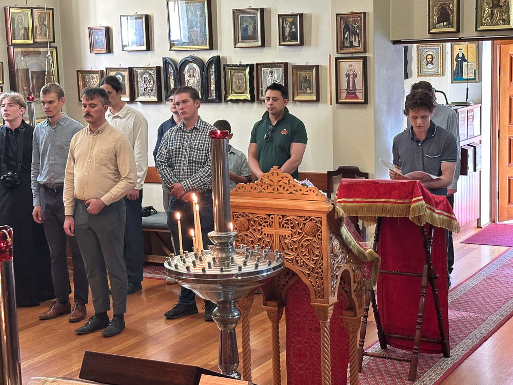 On the second-last day of the pilgrimage His Eminence Archbishop George, accompanied by Fr Andrew Morgan, made a special visit to the convent to meet and talk with the youth pilgrims. In an unhurried question and answer format, a great and varying range of subjects were discussed, with Vladyka providing archpastoral guidance and insight for the benefit of all. Vladyka’s unpretentious and good-natured manner made a particularly endearing and positive impression on the youth. Fr Andrew, the coordinator of the Diocesan Youth Mission, continued after the Archbishop and addressed the youth, discussing with them pertinent issues regarding effective youth ministry across the diocese and previous positive outcomes. Fr Andrew readily accepted any kind of constructive comments form the youth and noted suggestions for future projects.